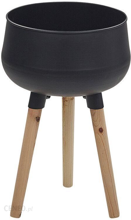 Beliani Doniczka na stojaku 30 x 30 x 47 cm drewniane nogi metalowa czarna Agros