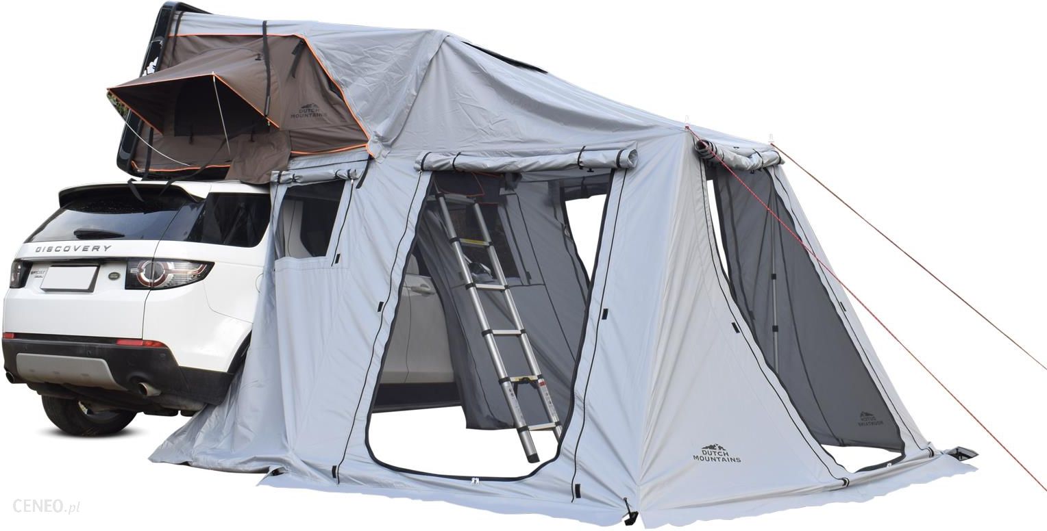 Powiększ namiot dachowy o przedsionek i odkryj nowy poziom biwakowania. Nie da się ukryć, że biwakowanie to doskonały pomysł na spędzenie czasu na łonie natury, z rodziną lub przyjaciółmi. Staje się ono coraz modniejsze. Wspólny wypad pod namiot to przygoda, którą będziesz wspominać przez lata. Dzięki nowoczesnym rozwiązaniom i przemyślanym projektom, Dutch Mountains wnosi wypad pod namiot na wyższy poziom.Namiot FOLD 4 marki Dutch Mountains pozwoli Ci na nocleg tam, gdzie tylko sobie to wymarzysz. Zrób pierwszy krok i wyrusz w podróż. Potem możesz komfortowo spać wszędzie tam, gdzie wjedziesz i zatrzymasz się samochodem. Klimat jaki towarzyszy nocowaniu na łonie natury jest niepowtarzalny. Jeśli marzy Ci się dodatkowa przestrzeń tylko dla Ciebie, zapewnij ją sobie doczepiając aneks dolny do namiotu. Przedsionek idealnie sprawdzi się nawet w trudnych warunkach offroadowych i jest prosty w montażu.W aneksie dolnym znajdują się 2 okienka oraz 3 otworzy drzwiowe. W zależności od preferencji możesz je zasłonić lub odsłonić. W każdym znajduje się dodatkowo moskitiera, która zabezpieczy Cię przed komarami. Wystarczy, że postawisz w aneksie źródło światła i możesz relaksować się do późnych godzin wieczornych, na łonie natury z dala od nieprzyjemnych ugryzień owadów.Przedsionek do namiotu możesz dokładnie dopasować do swoich potrzeb. Dzięki teleskopowym słupkom możesz łatwo wyregulować jego wysokość tak aby zapewnić sobie 100% komfortu. Aluminiowe słupki są lekkie a ich regulacja bardzo łatwa.Dane techniczne:Wymiary : 310 x 300 x 190 cm (dł. x szer. x wys.)Płynna regulacja wysokości słupków: 89 – 230 cmSposób montażu: doczepienie do namiotu za pomocą zamka i rzepuKolor: szaryMateriał wykonania: wodoodporna tkanina Oxford 420D (PU 2000mm)Gwarancja: 2 lataO marce:Kemping jest dla Holendrów drugą naturą. Właśnie to zainspirowało ich do stworzenia marki Dutch Mountains opartej na wieloletnim doświadczeniu, opracowywaniu materiałów i nowych możliwościach produkcyjnych- marki która za gwarantuje nowy poziom komfortu na kempingu.Dutch Mountains oferuje szeroką gamę niezbędnych akcesoriów kempingowych. Doskonały stosunek jakości do ceny. Namioty, śpiwory, plecaki wykonane z mocnych i lekkich materiałów – wszystko w jednym miejscu.
