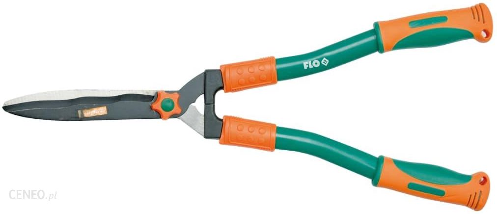 Ręczne nożyce do żywopłotu marki FLO mają faliste ostrza, które zapobiegają odskakiwaniu gałązek podczas przycinania. Ostrza wykonane ze stali węglowej zapewniają wysoką odporność na ścieranie. Ich powierzchnia została pokryta warstwą politetrafluoroetylenu (PTFE), aby podnieść komfort pracy Ergonomiczne rączki zwiększają siłę cięcia. Zawierają one otwory do powieszenia, które ułatwiają przechowywanie.