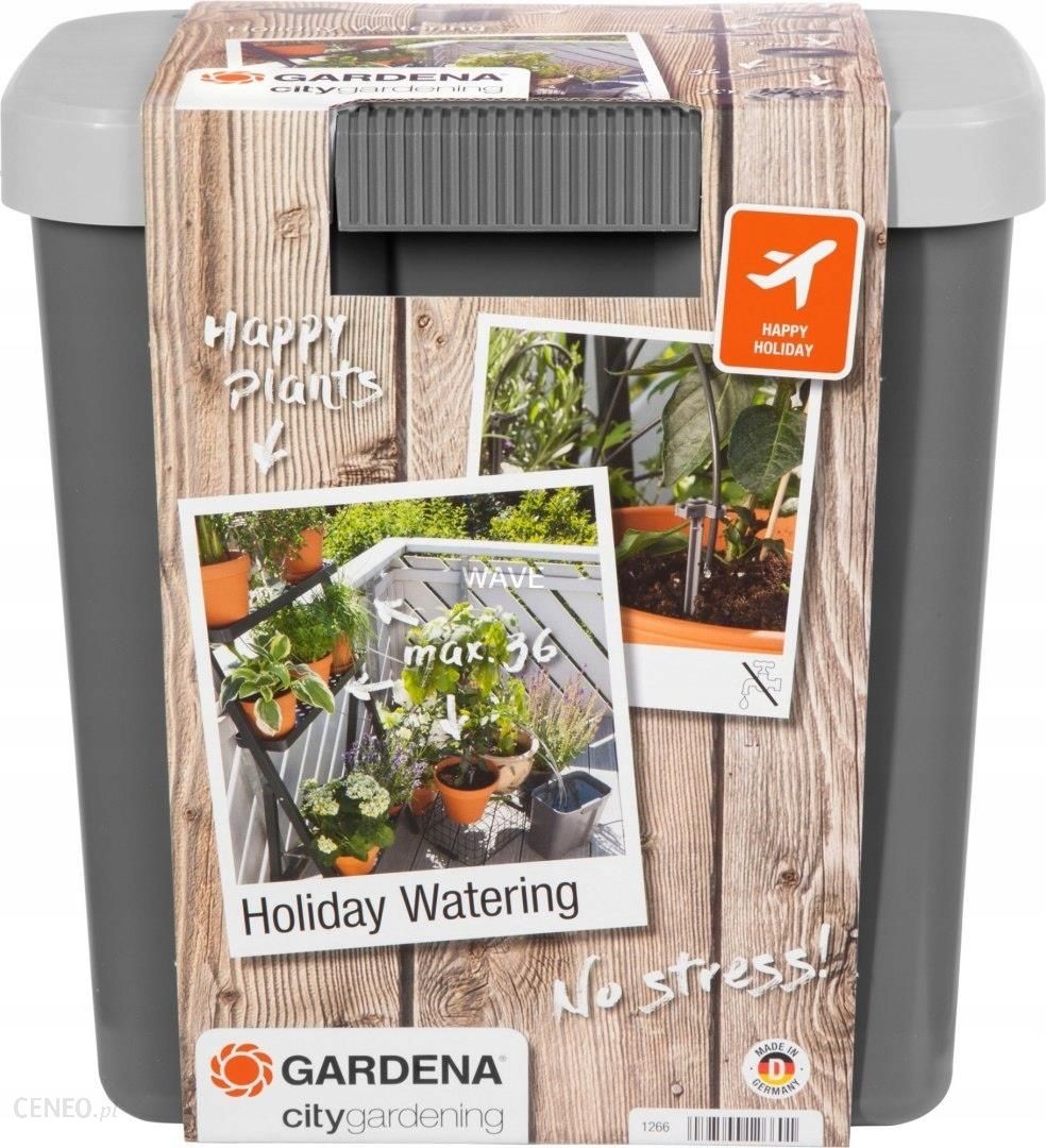 GARDENA automatyczna konewka 1266-20Gardena automatyczna konewka do skrzynek balkonowych umożliwia automatyczne nawadnianie nawet sześciu metrów skrzynek kwiatowych. Wbudowany programator zawierający 13 stałych programów pozwala na łatwe nawadnianie skrzynek kwiatowych pod nieobecność użytkownika. Konewka do skrzynek balkonowych może współpracować np. ze zbiornikem na deszczówkę, co uniezależnia ją od kranu. W przypadku konieczności podłączenia więcej niż sześciu metrów skrzynek kwiatowych zestaw można rozbudować.